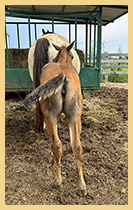 If you would like to be put on a waiting list for a particular cross, color, and/or sex let me know. Babies are priced at approximately 2-3 weeks of age or after color testing comes back. Then I price them & first go down the waiting list & if no one has put down a deposit I offer that foal to the public. Most are sold off the waiting list. They sell quickly so if you have questions get them answered right away. Once someone puts 25% down that foal is sale pending. Foals are weaned at 4 months & have free board until that time. After that they can be picked up or if you would like to board until they are older that is available also. Our waiting lists go into next year currently.